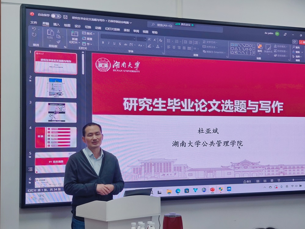 杜亚斌老师先以幽默的方式跟大家探讨论文的时间安排,再从“正确认识学术研究”话题入手,就什么是研究问题、什么是好的研究问题谈了自己的看法和见解。随后,又从引言导入、文献综述、理论分析、研究方法、结论建议五个方面对毕业论文写作中的常见问题和写作技巧进行了剖析和讲解,并结合正反两方面的写作案例、自身的写作经验与同学们进行了重点分享与互动交流。