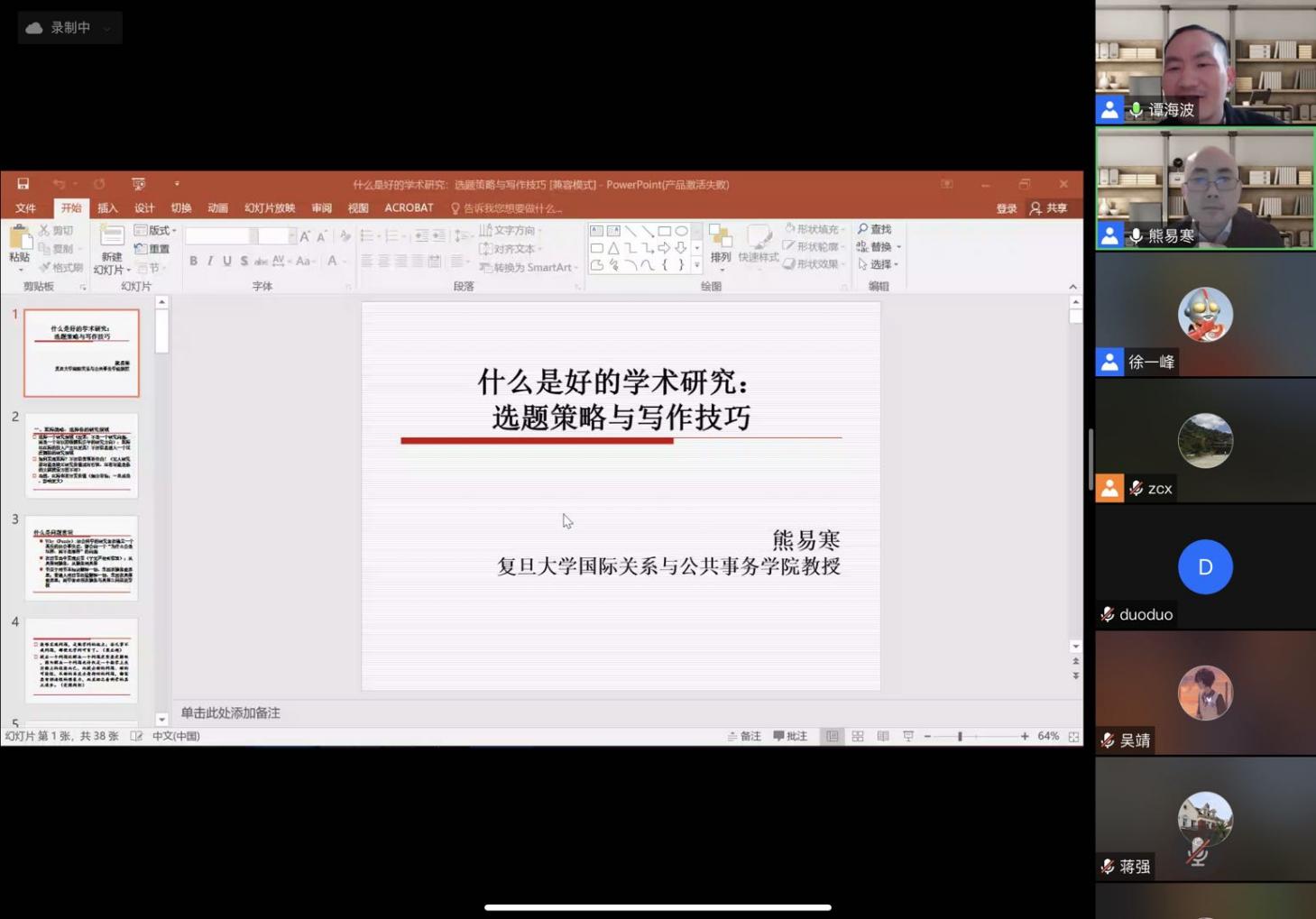 公共管理研究生论坛通过腾讯会议顺利举办。复旦大学国际关系与公共事务学院副院长、教授熊易寒受邀担任本场活动的主讲人,做了题为“什么是好的学术研究?——社科论文的选题策略与写作技巧”的学术讲座。樱花漫画