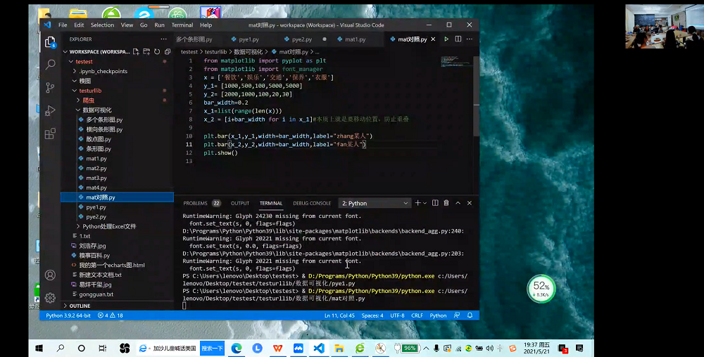 马子舒同学以“Python实战:文件处理/网络爬虫/数据可视化”为题,分享Python学习经验,归纳出其个人的Python学习框架。她指出熟练使用Python的关键在于厘清代码逻辑,掌握基础的编码知识,了解应用场景,善于运用网络资源,学会灵活的修改和运行一些源代码,而后再去探索一套适用于自己的学习方式。从Python的下载与安装、编辑器的选用、基础知识的学习、Python包、库、模块到Excel文件的合并与拆分、网络数据爬取、数据可视化等方面分别进行了详细的原理阐述与实操演示,以及如何通过Matplotlib、Pyecharts等数据库修改源代码,以解决自身需要。在分享的最后,马子舒同学提出了自己学习的一些心得体会,现场的同学们也积极互动,就代码的修改以及数据的可视化进行了深入的交流。