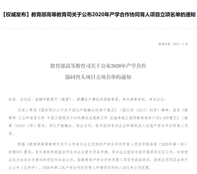 日前,教育部发布了《教育部高等教育司关于公布2020年产学合作协同育人项目立项名单的通知》(教高司函〔2021〕3号),樱花漫画