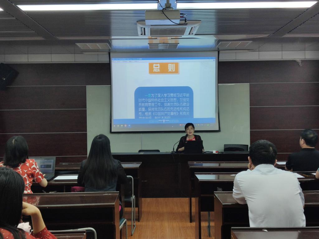 全体教工党员会议在法学楼404教室召开,会议主要围绕《中国共产党党员教育工作管理条例》学习开展,院党委书记付蓉芬主持会议,全体教工党员参会。