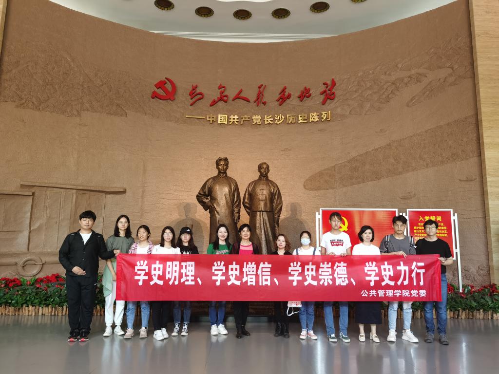 机关党支部、本科生党支部前往长沙党史馆联合开展“学史明理、学史增信、学史崇德、学史力行”党史学习教育专题活动,重温峥嵘岁月,缅怀英雄事迹,感悟先辈精神,有效推进党史学习教育走深走实走到位。参与本次学习活动的有学院党委书记付蓉芬、学院机关党支部书记李释然、支部部分党员,本科生党支部部分党员。