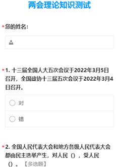 在自主学习后,大家通过网络参与知识竞答,测试内容紧紧围绕习近平总书记2022年全国两会重要讲话精神。