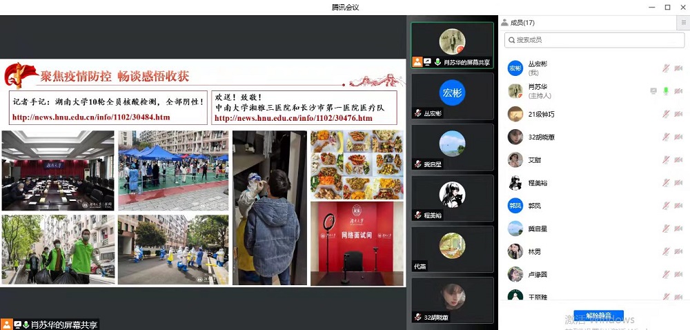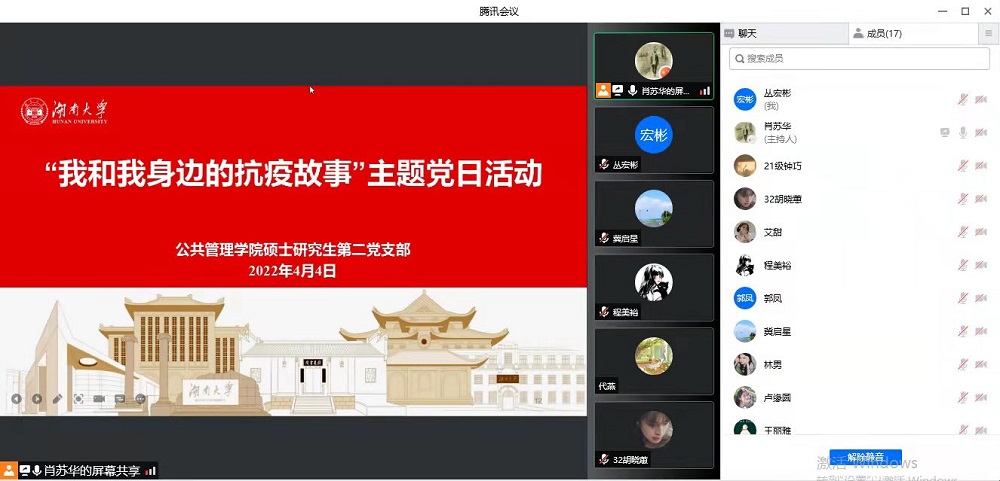 硕士研究生第二党支部通过腾讯会议开展“我和我身边的抗疫故事”线上主题党日活动,活动由支部书记肖苏华主持,支部全体党员、积极分子参加。