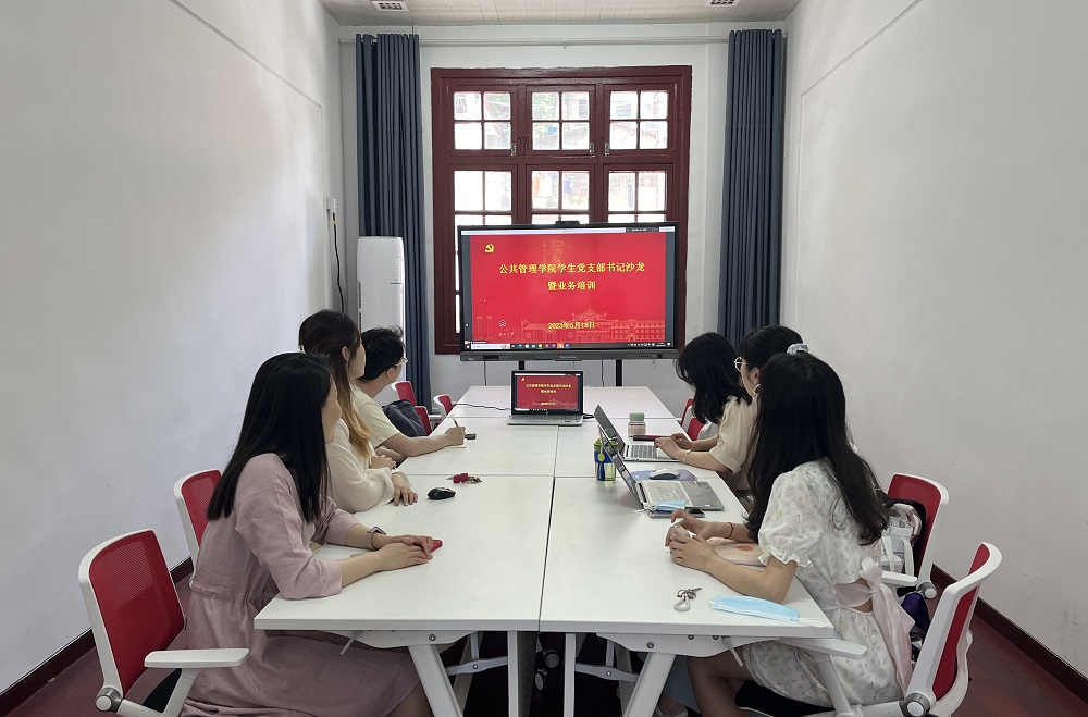 于院楼220会议室开展支部书记沙龙暨支部书记业务培训。会议由院党务与人才培养办公室主任杨锦滔主持,硕士研究生第四党支部书记罗欢围绕“党支部建设与党员发展”等业务内容主讲,本研学生党支部书记参与聆听。