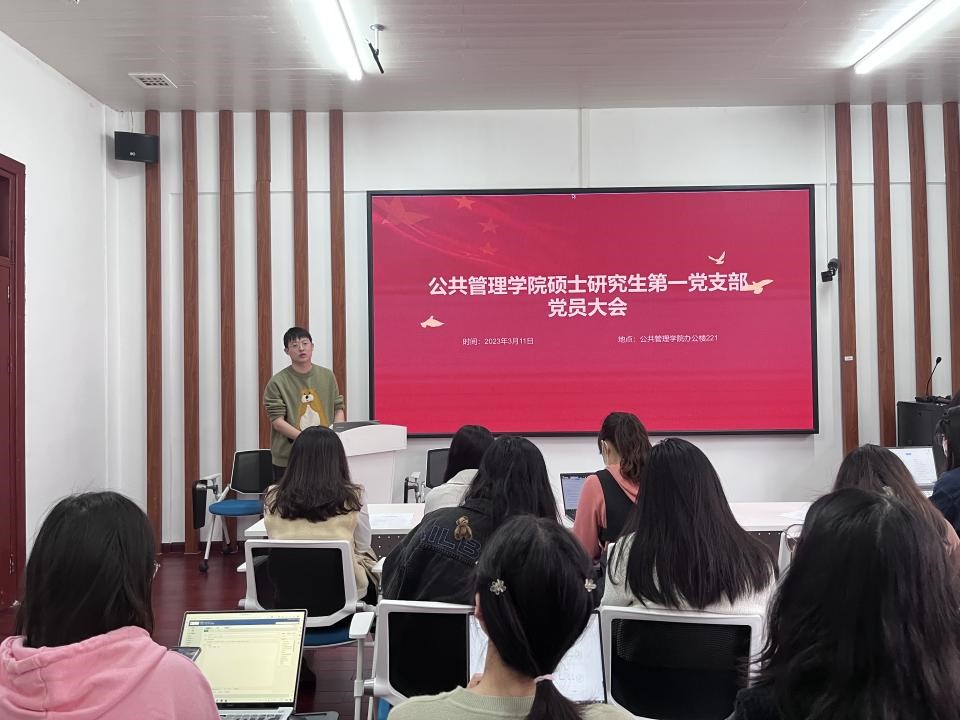硕士研究生第一党支部在院楼221召开2023年度第一次党员大会。与会党员就李澈、李雅珊预备期满转为正式党员事项进行讨论和表决,同意接收两位预备党员转为中共正式党员。