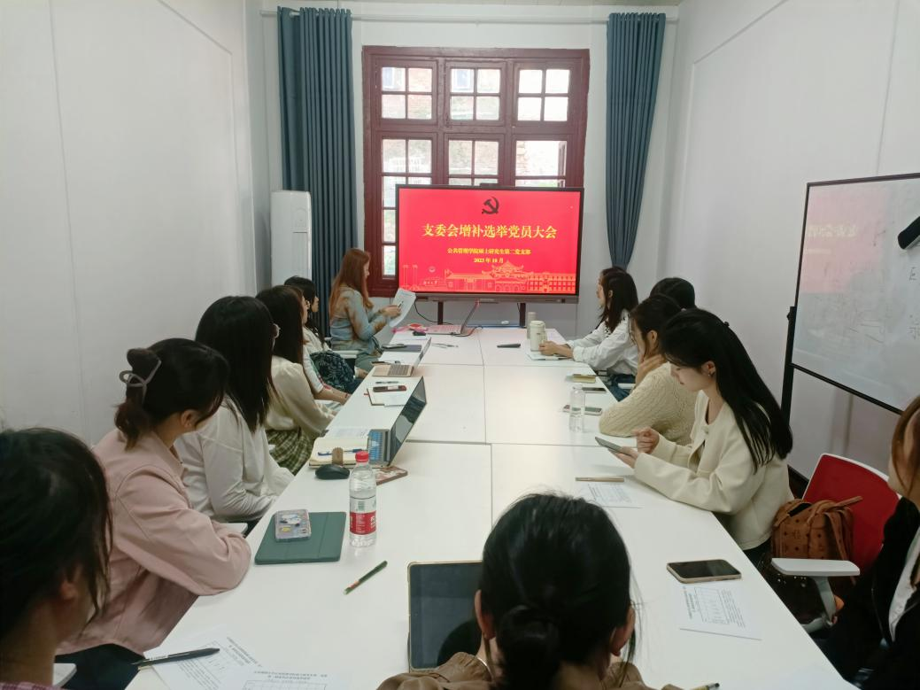 硕士研究生第二党支部在院楼214室召开党支部委员会委员补选党员大会。党支部书记张佳乐主持会议,全体支部党员参加。