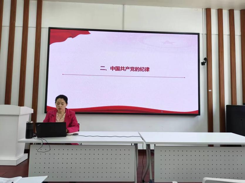 课程伊始,程聪慧老师便阐明了全面从严治党的重要性,随后从中国共产党的组织原则、中国共产党的纪律、如何自觉遵守党的组织原则和纪律、中国共产党的作风建设四个方面进行了详细讲解。并以视频“习近平讲述的故事——井冈山精神”为引,强化了在座学生对艰苦奋斗精神、实事求是精神、群众精神的认识。课程的最后,程聪慧老师带领同学们对入党誓词进行学习,充满奉献与理性光辉的誓词在全体参会人员的心中深刻留存。