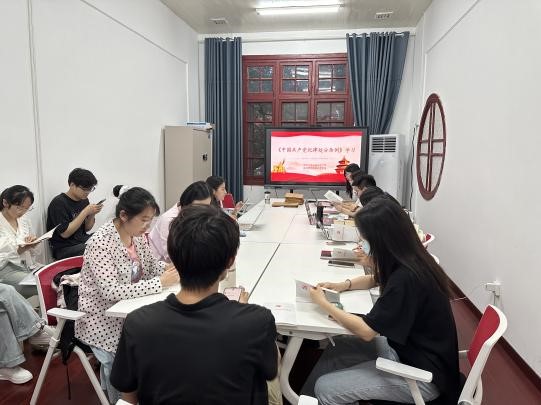 其次,由支部书记刘昱呈领学《中国共产党纪律处分条例》。她指出,纪律是党的生命线,是党的力量所在,我们要党纪学习活动为契机,自觉遵守党的规章纪律,做到知敬畏、存戒惧、守底线。随后,经与会党员讨论,确定将《条例》和《半月谈》作为下一阶段我支部党课学习的主要材料。