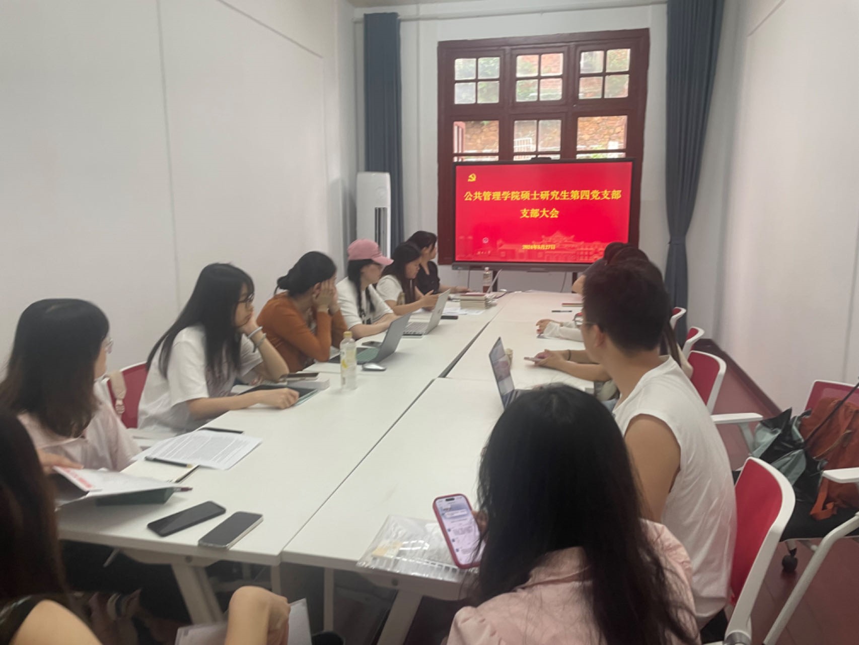 硕士研究生第四党支部在学院214室召开支部大会,会议由支部书记何思缤主持。