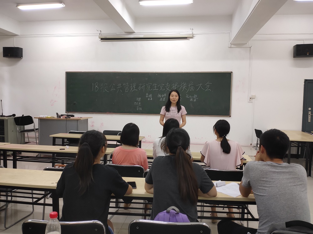 9月11日中午,2018级公共管理硕士研究生党支部召开支部党员大会暨支部委员换届选举,共10名党员同志参加会议,党务与人才培养办公室主任兼研究生辅导员杨锦滔老师列席会议。会议由2018级公共管理研究生党支部书记苏艳红主持。