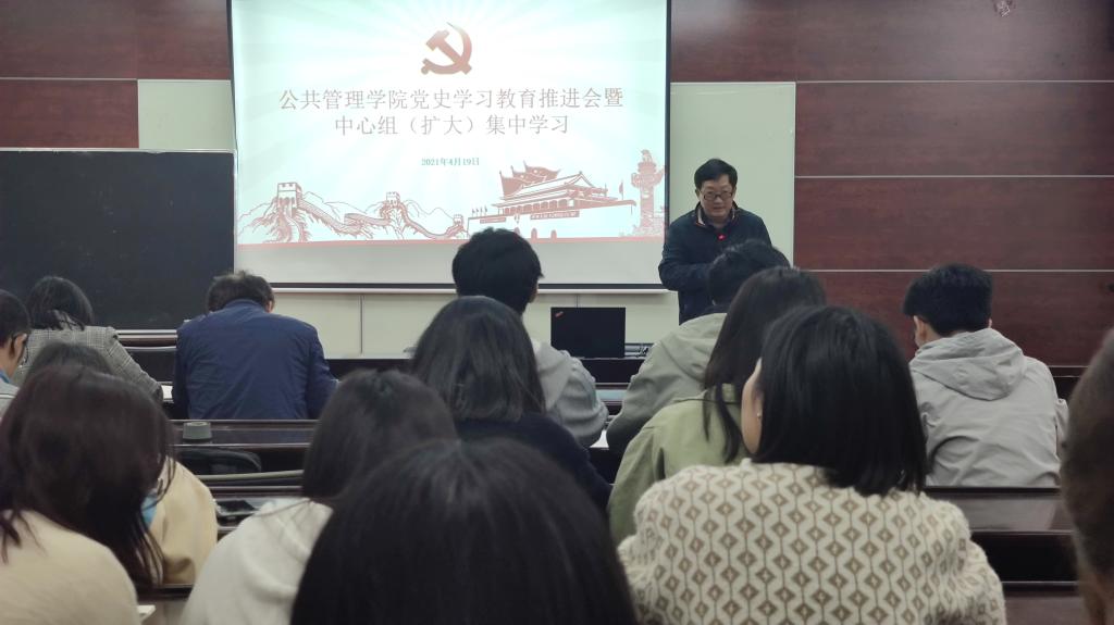 党委于2021年4月19日下午在法学楼404教室召开党史学习教育推进会暨中心组(扩大)集中学习。院长李连友主持会议,樱花漫画