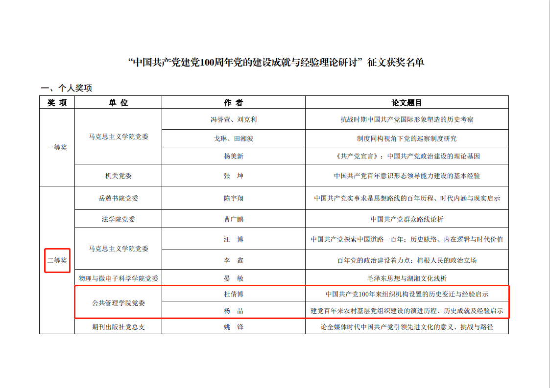 经学校专家评审, 学院党委副书记杜倩博的《中国共产党100年来组织机构设置的历史变迁与经验启示》、公共政策研究联合党支部教师杨晶的《建党百年来基层党组织建设的演进历程、历史成就及经验启示》均获二等奖,2019级硕士研究生党支部顾秀丽的《建党100年中国共产党的理论创新和经验启示》、2019级硕士研究生党支部林男的《建党100年党的理论创新历程和经验启示》均获三等奖。樱花漫画