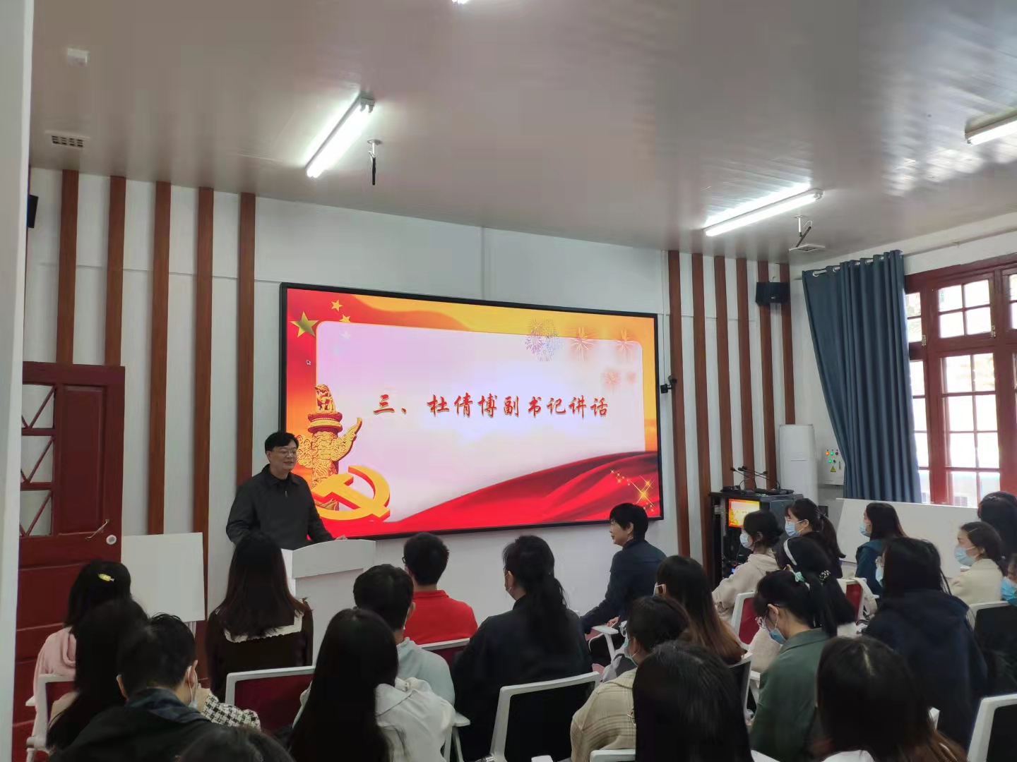 党委书记付蓉芬老师对参加本次培训班的学员做了开班动员,付书记指出在中国共产党成立100周年之际,开设此次发展对象培训班,专题学习党史和党的各项基本理论知识,意义重大,希望同学们珍惜机会,不断提高政治理论水平,做到政治上合格、过硬。付书记还要求学员们在培训学习中进一步明确共产党人的初心与使命,思考“为什么说中国共产党的诞生改变了中华民族发展方向”“为什么说中国共产党的诞生改变了中华民族前途命运”“为什么说中国共产党的诞生改变了世界发展趋势和格局”,并通过系统学习“四史”,从中国取得的伟大成就出发,思考“中国共产党为什么能”“中国特色社会主义为什么好”等问题。