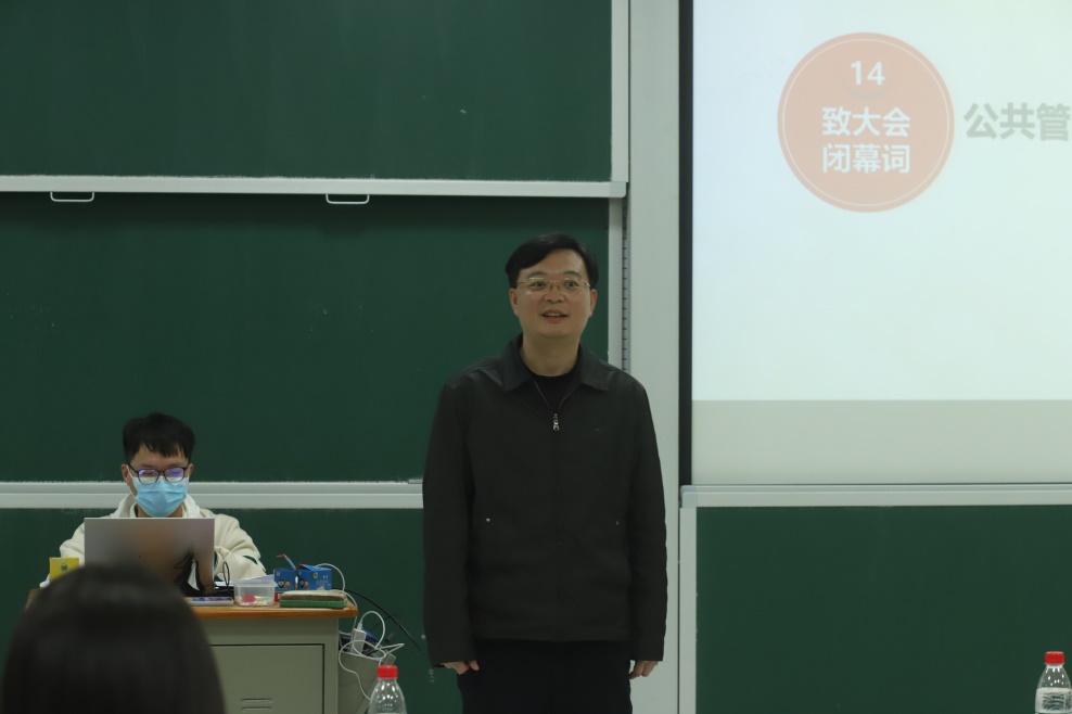 最后,杜倩博致大会闭幕词,他首先向三位当选同学表示祝贺,同时对第二届研究生会成员的工作表示认可。他强调樱花漫画