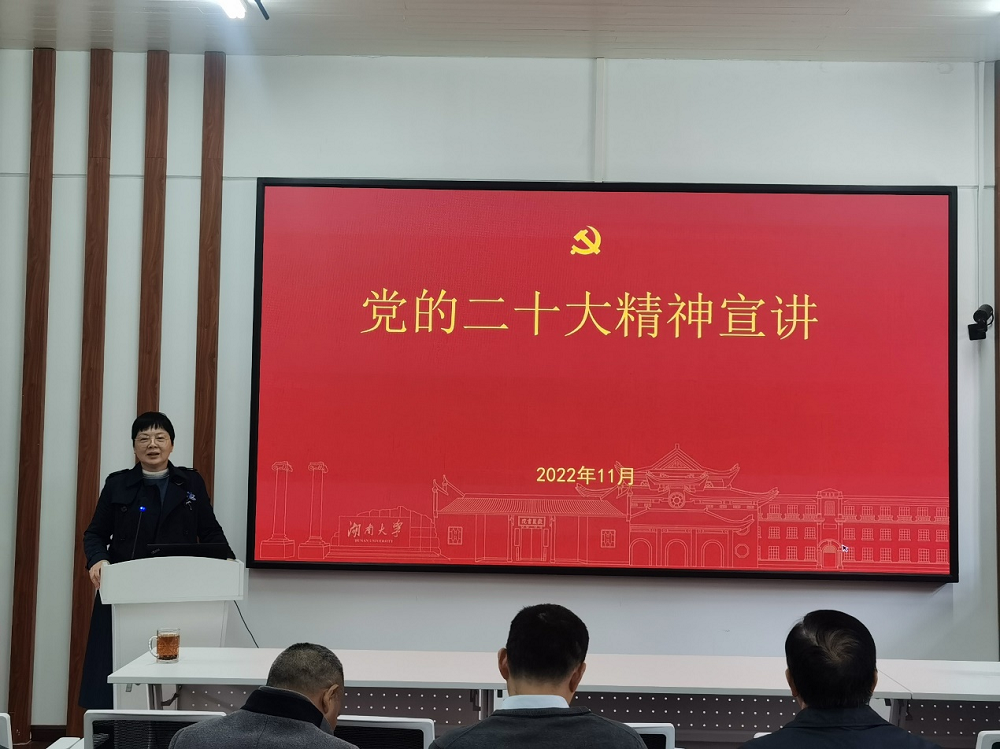 2022年11月15日下午,樱花漫画 召开全体教职工会,专题学习党的二十大会议精神,院党委书记付蓉芬领学。