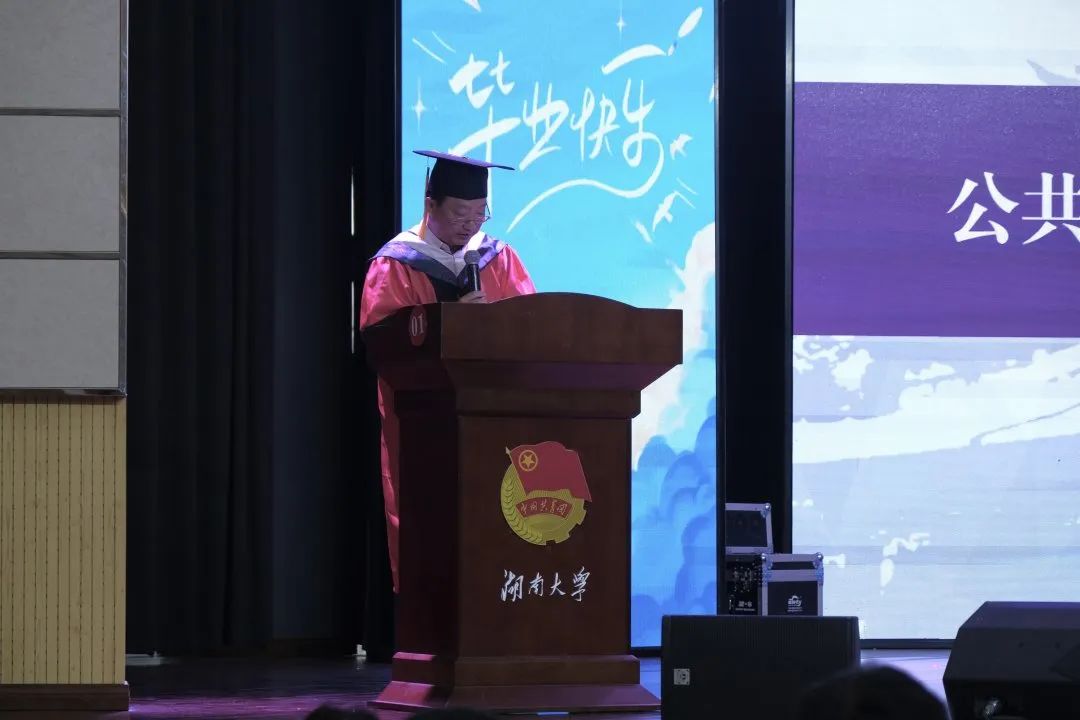 对于三点希望,我首先希望你们怀有“惟楚有材,于斯为盛”的自信豪气。古往今来,湖湘文化绵延不绝,湖湘大地人才辈出。今天,我国正处于实现中华民族伟大复兴的关键时期,中国式现代化扎实推进,时代呼唤具备独立思考能力、公共事务洞察力、能够担当公共责任的新时代人才。几年求学生涯,你们在老师的指导下聚焦公共问题,思考时代之问,培养研究能力,在国内外高水平期刊发表论文;在课题研究、政策研究中贡献智慧、热忱;在学生工作岗位上尽职尽责,服务师生;在学校疫情防控时冲锋在前,在志愿服务中绽放光芒......这些成绩既是你们人生的亮点,也是学院的骄傲。前行的道路总有艰难困苦,但勤学苦读、砥砺前行的你们应当有 “天生我材必有用”的自信豪气,淡定从容、勇往直前。