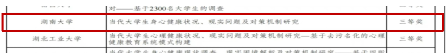 公共健康与社会保障研究所所长杨晶副教授指导带队,行政管理专业22级本科生王培睿、乔冠伦等同学组成的参赛团队,经过揭榜、初选、复审、终审等环节的激烈角逐,其参赛项目“当代大学生身心健康状况、现实问题及对策机制研究”荣获“全国三等奖”。