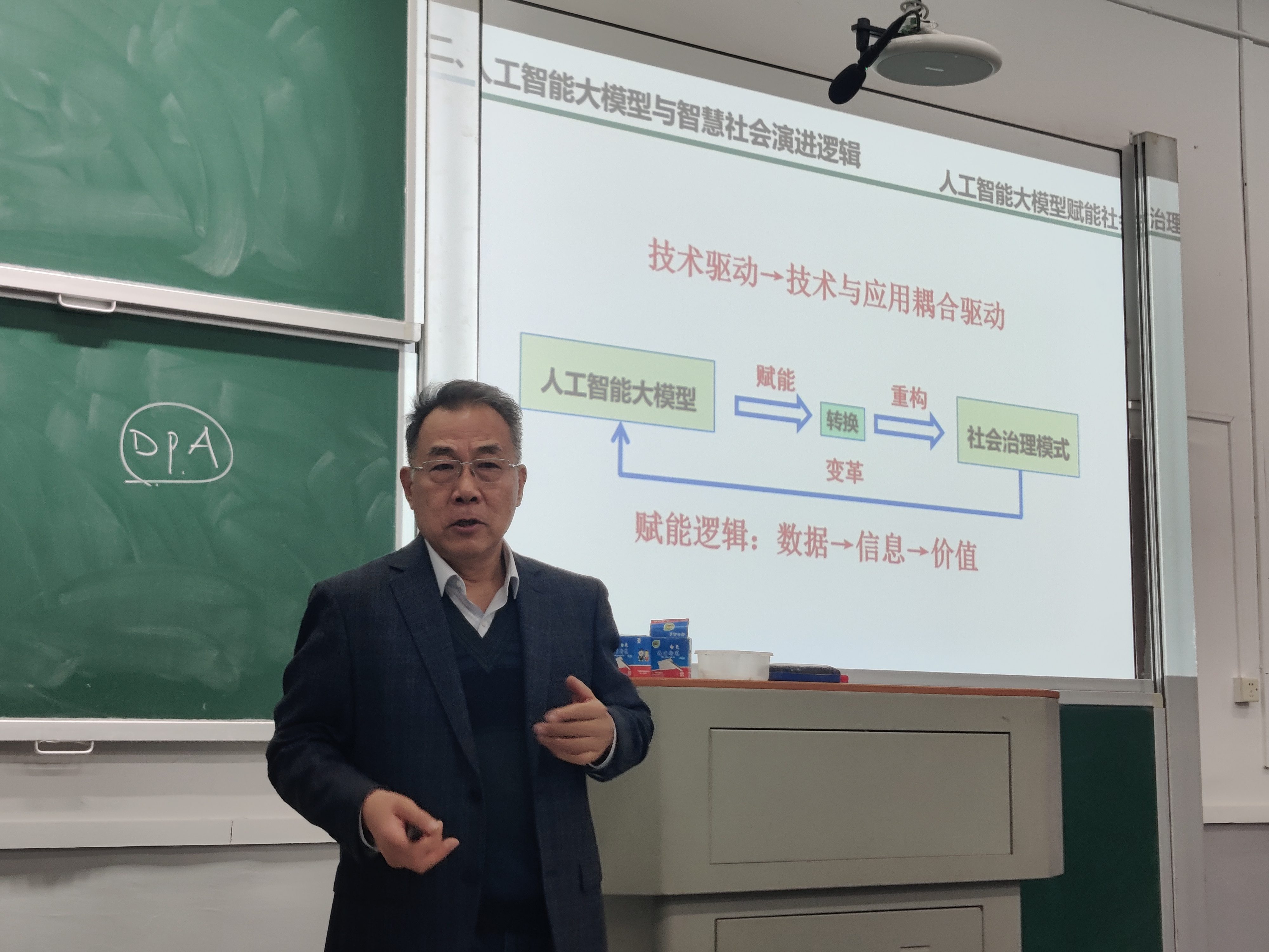 韩传峰教授从人工智能大模型发展任务空间切入,强调要培育人工智能大模型发展友好生态,构建多方联动的支持体系,切实增强我国在人工智能大模型发展中的自主掌控力。韩教授深入剖析了人工智能赋能社会治理新模式的实施路径,结合丰富的典型案例,生动展示了人工智能大模型赋能实体经济、推动产业高质量发展的现实路径与深刻启示。讲座最后,韩教授引用习近平总书记的寄语——“人工智能是年轻的事业,也是年轻人的事业”,勉励青年学者积极投身人工智能大模型研究事业。他结合自身科研经历,为青年学者提供了具有前瞻性与实践价值的研究选题建议,赢得了在场师生的热烈掌声。整场讲座内容详实、反响热烈,在浓厚的学术氛围中圆满落幕。
