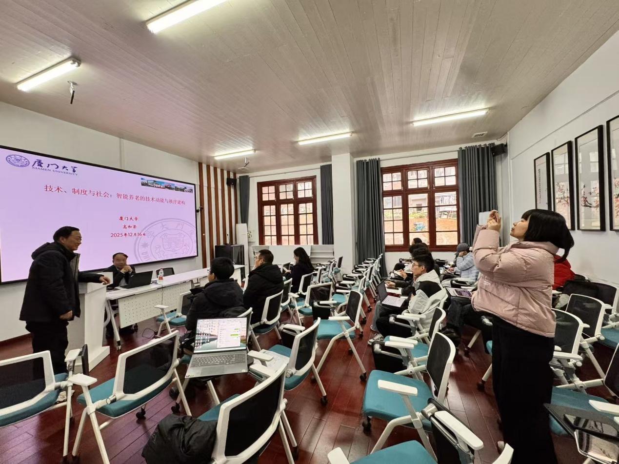 在问答环节,高教授围绕“新业态从业人员社会保障”“技术与社会的互动关系”等议题,进一步与在场师生进行互动交流与探讨。本次讲座不仅有效拓宽了师生们的学术认知边界,为我们理解数字技术在智慧养老领域的应用提供了分析范式,更进一步激发了大家对数字技术时代社会保障问题研究的兴趣与思考。