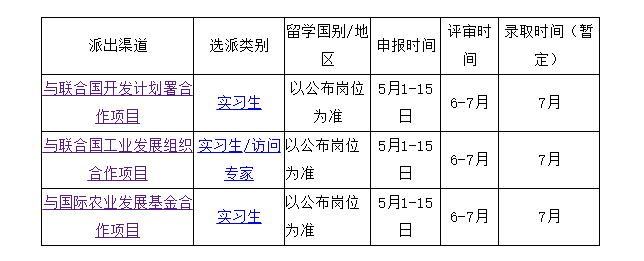 具体信息请查看国际组织实习项目专栏。与其他国际组织合作项目将根据国际组织提供岗位情况分批发布,具体时间另行通知。