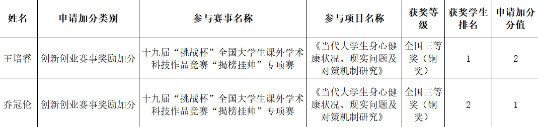最终加分情况由学校相关部门认定。