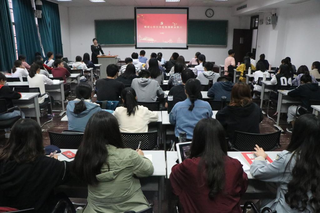 “把一切献给了党的贺龙元帅说:‘党要我怎么干,我就怎么干’。”党课内容将革命年代的动人故事与老一辈革命先锋的理想信念结合起来,生动形象,深入浅出,让学员们深切体会到了革命先辈的初心以及他们的坚定和执着的信念,感受到革命先辈的大局意识、攻坚意识和奉献意识。同学们无不深深地被革命先辈的斗争品质、斗争意识和斗争本领鼓舞,为革命先辈心中始终装着群众、坚持为人民服务、团结依靠群众的事迹所感动。最后付蓉芬书记从优秀革命先辈的事例中总结出忠诚、担当、斗争、为民、敬畏几个关键词与大家共勉,希望学员们能够以先辈为榜样,不忘初心,坚定跟党走,为成为一名合格的党员而奋斗。