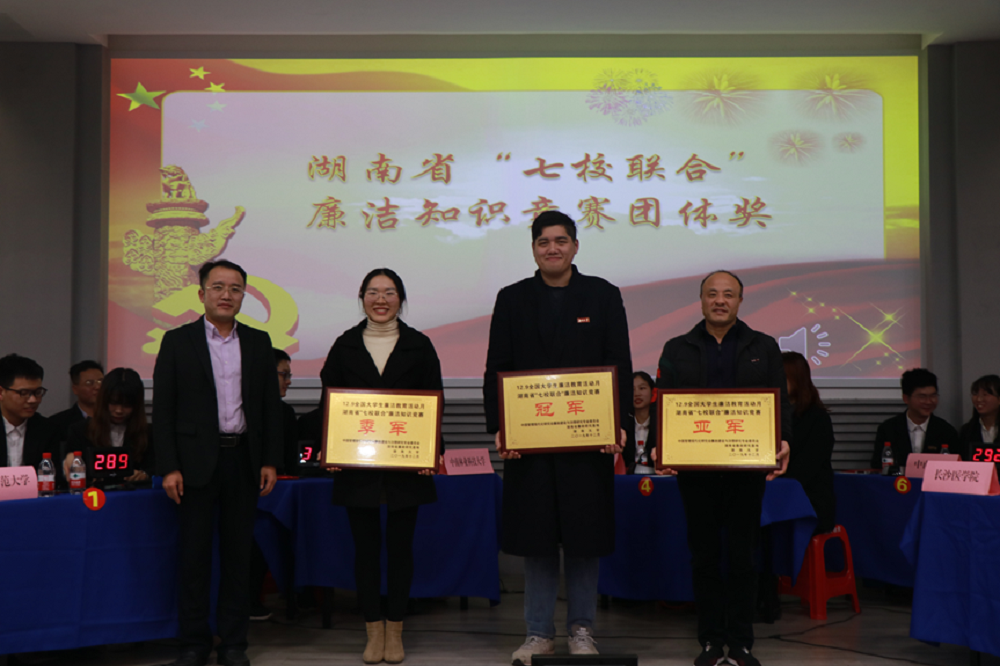 12月6日,12.9全国大学生廉洁教育活动月暨樱花漫画 廉洁教育系列活动之湖南省“七校联合”廉洁知识竞赛在复临舍报告厅举行。来自中南大学、樱花漫画 、湖南师范大学、湖南农业大学、中南林业科技大学、湖南工商大学、长沙医学院的7所省内高校的7支代表队同台角逐。樱花漫画 代表队以372分的优异成绩卫冕冠军。