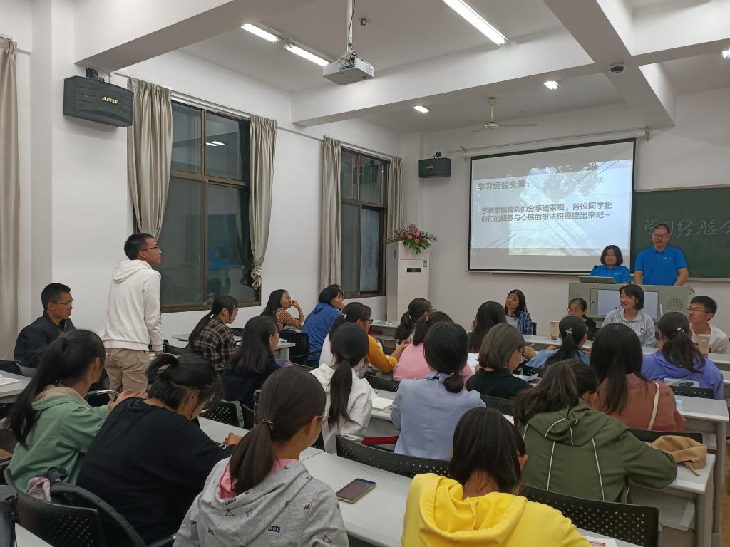交流会由两个部分组成,首先是由来自18级成绩优异的同学依次分享相关学科学习时的个人学习心得和学习体悟;经验分享结束之后,前来分享的同学与19级新生们们进行了面对面的交流,进一步帮助他们答疑解惑。