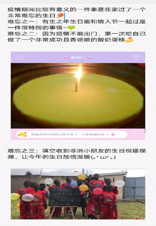 此次“共抗疫情、爱国力行”主题网络宣传活动,同学们皆积极参与,或待在家中不给社会添麻烦,或支持家中的一线工作者工作,或身体力行去超市值班,为进出人员登记及测量体温,或努力学习,尽早完成毕业论文,保障学业有序进行等。在“腊尽春回”影像展示活动中均表达了对打赢疫情防空阻击战的必胜信心,对开学的期待。相信全民一心、上下一致,我们终究能迎来开学的到来。
