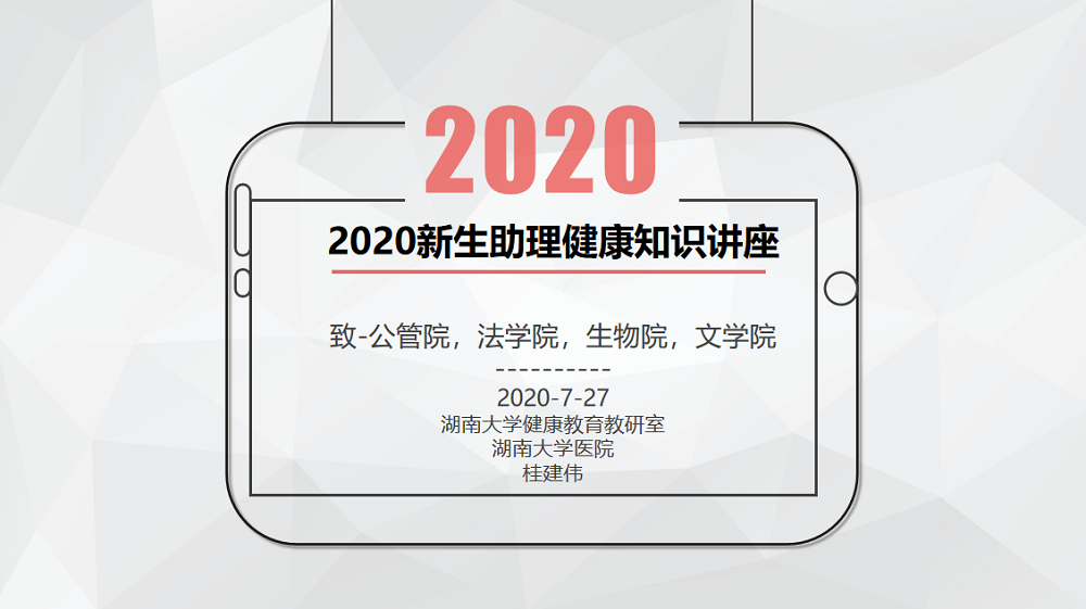 的校园生活、长沙的气候饮食等,树立“既来之,则安之,战胜之”的心态,知道对待疾病的正确态度、掌握预防皮肤损伤的正确方法、明白疫苗注射的重要性、了解使用大学生医保的方法和途径,以及学会如何测量“四测”生命体征:测体温、测脉搏、测呼吸、测血压。桂院长对于新生须知篇的详细讲解,解答了新生在入学前的大部分困惑,对新生的入学适应以及健康生活有着极大的帮助。