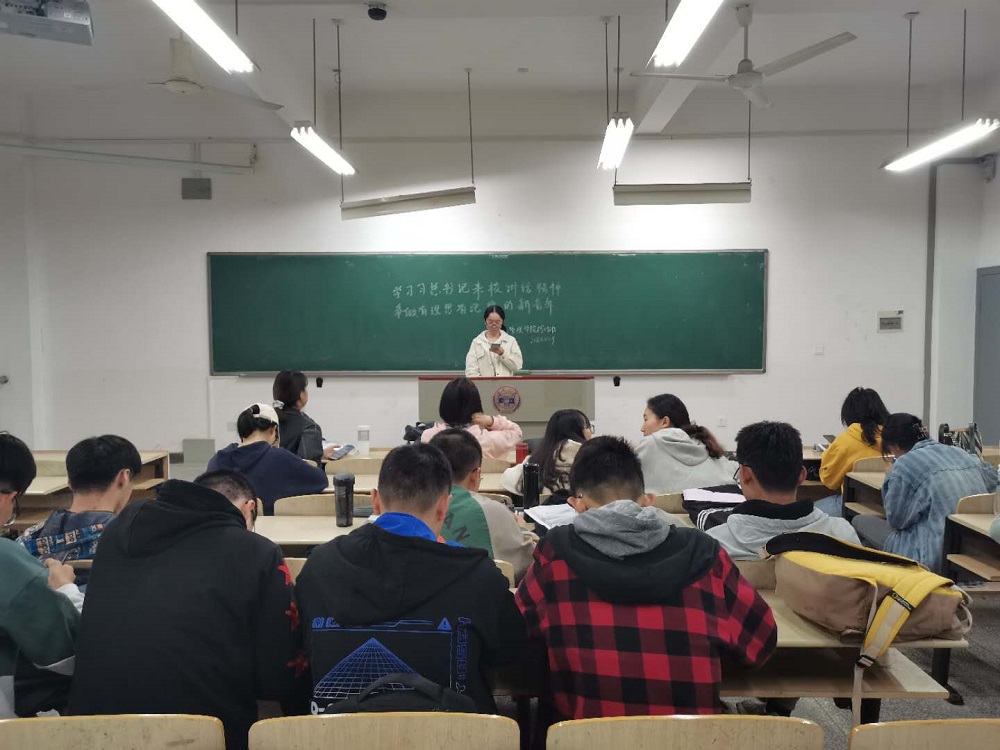 会议伊始,全班同学共同观看习近平总书记在岳麓书院的讲话视频。接着,车林林通过PPT展示了邓卫书记和段献忠校长对习近平总书记讲话精神的阐释。最后,同学们围绕习近平总书记的重要讲话精神以及校党委书记和校长的阐释进行相关学习研讨。