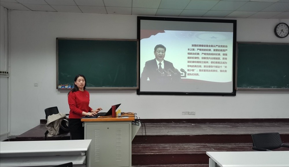 接着,程老师为同学们详细讲解了党的组织纪律。主要介绍了严明党的政治、组织、廉洁、群众、工作、生活六大纪律。这六大纪律相互联系、相互统一,涵盖党的纪律各个方面。同时,在观看一段贪腐分子自白悔过视频后,程老师向学员们解释了产生腐败的五大因素,并告诫同学们不要心存侥幸心理,要杜绝一切腐败问题,让同学们深刻了解到贪污腐败的严重后果,也认识到坚持党的初心、遵守党的纪律的重要性。随后,程老师通过一系列提问引发了学员们对如何自觉遵守组织原则和纪律的深刻思考。