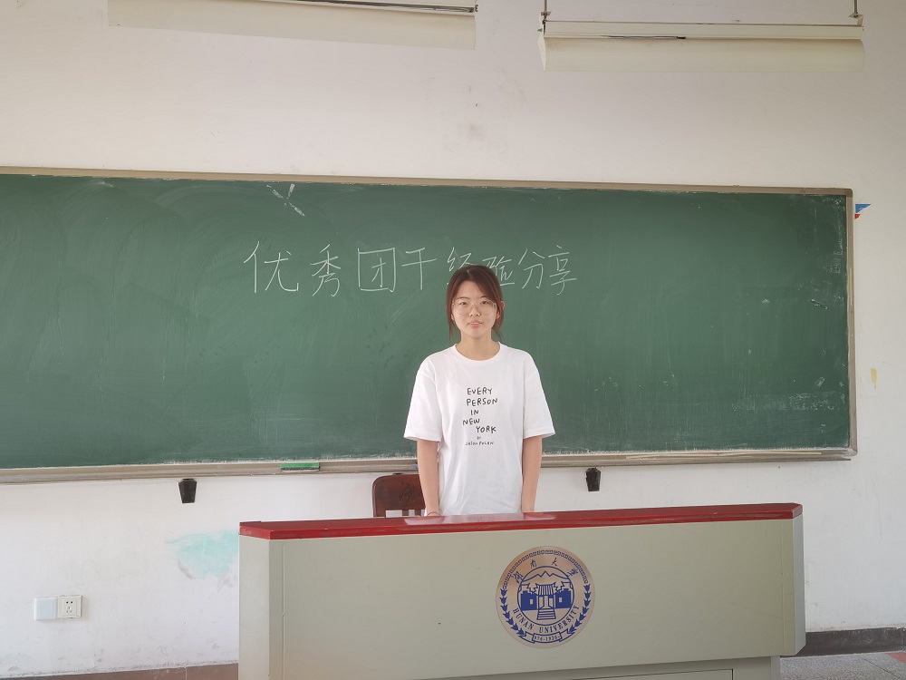 紧接着,曲文英同学在其分享中表示,任职团干这段时间以来,她对“为人民服务”这句话有了更深的理解,而作为一名团干,就是应该带领着团员,身体力行地服务同学,向党靠拢,强党性,筑党心。
