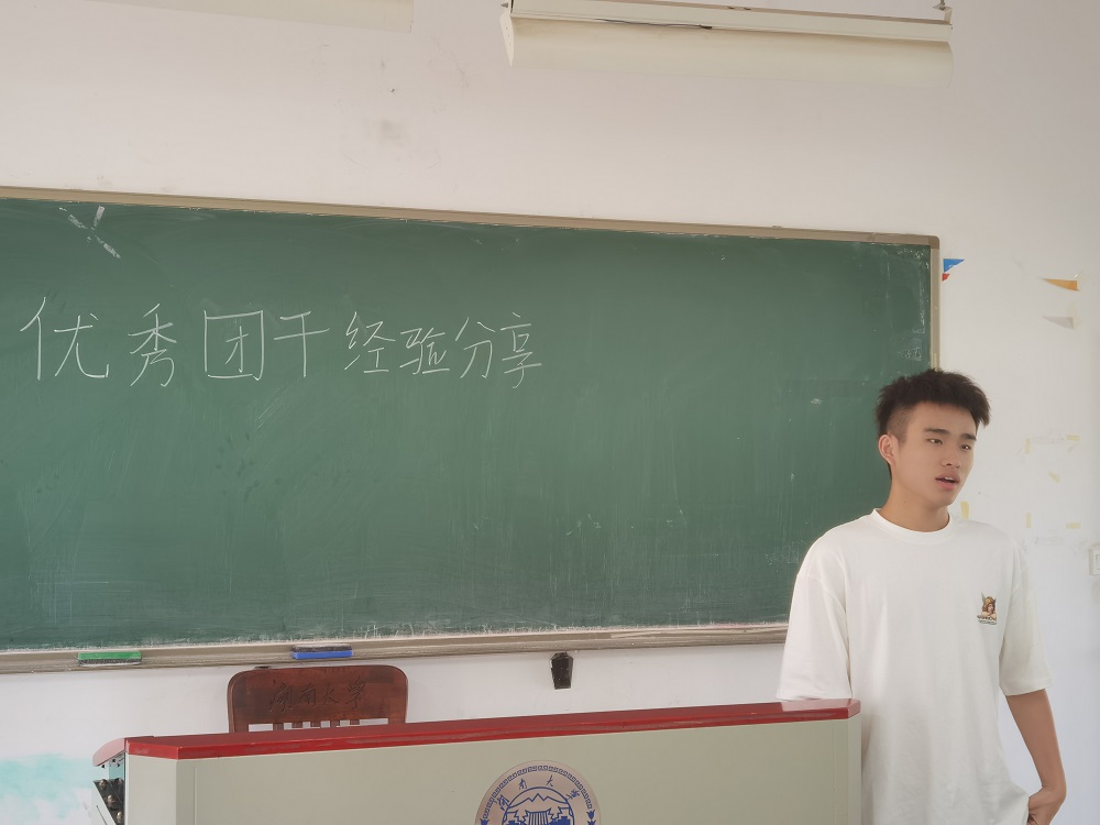 随后,两位优秀团干分别作了经验分享。首先,方佳辉同学说道:“共青团是党的助手和后备军,我为能成为团的一员,成为团的干部而感到骄傲与自豪。在奉献中成长与收获,是我对自己去年团干部工作经历的总结。在服务于广大团员同学的过程中,加强了我沟通交流、组织策划、团结协作等能力。团干部身份更时时刻刻鞭策监督着我的一言一行,深化了我的担当与奉献意识。”