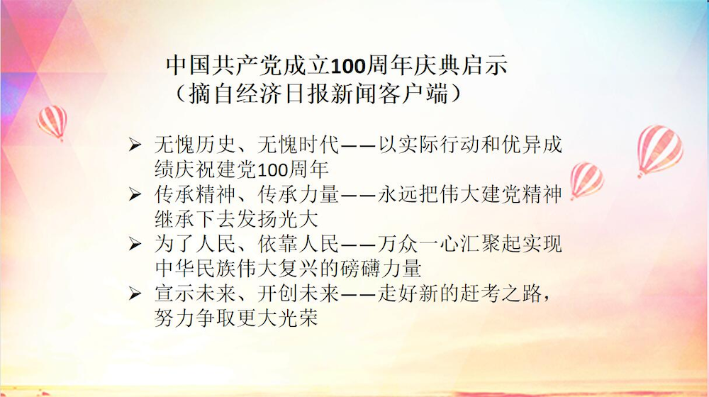 奋斗是青春的底色,行动是最好的传承。从习近平总书记的重要讲话中创造的宝贵精神财富中汲取智慧,勇做走在时代前列的奋进者、开拓者、奉献者,这是青年学生对中国共产党最好的纪念,也是对习近平总书记重要讲话的最好的传承。