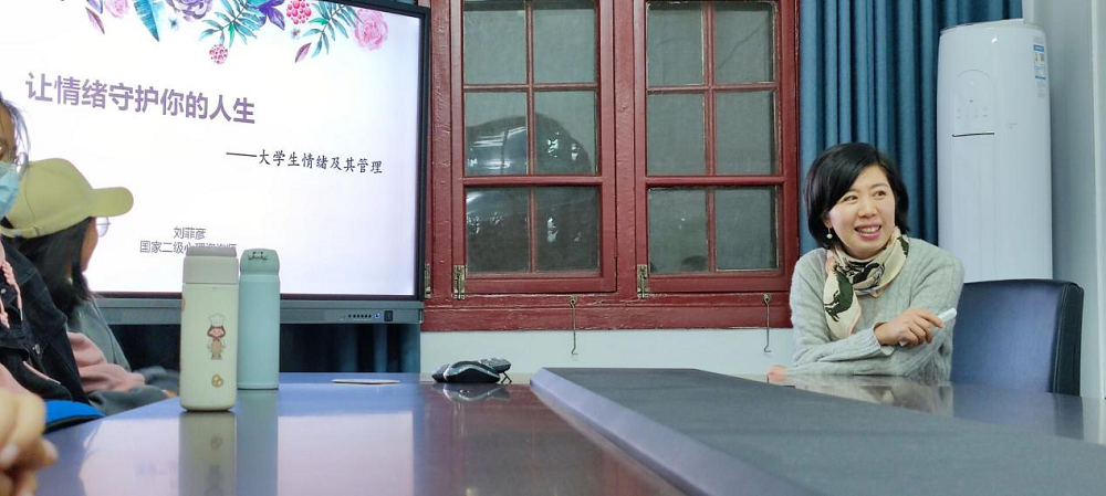 本次团辅的主题为“让情绪守护你的人生”。讲座伊始,刘老师先让大家闭上眼睛,引导同学们放松全身,感受呼吸的存在。睁开眼睛后,老师带领同学们开展“看见”的热场活动,教室充满了轻松活跃的气氛。