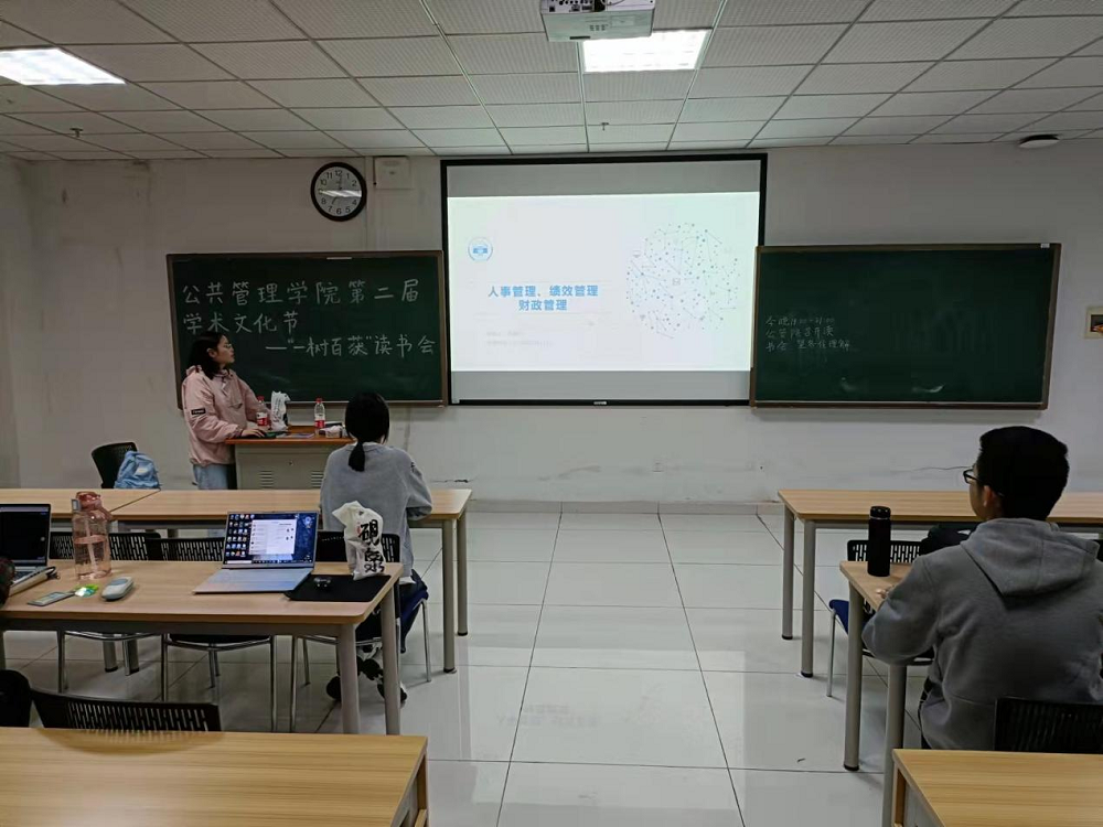 此次读书会同学们围绕《公共管理导论》一书展开讲解与讨论。首先,王丽妮同学为大家讲解了人事管理、绩效管理、财政管理的相关内容。传统的人事管理在组织和人员调配中,由管理者设计组织结构和程序并把人员安排到重要职位上,使组织结构的设计与其职能相协调。这种传统的人事管理拥有其独特的优点,为体制内的公务员提供了一种获得稳定感的途径。另外,这一人事管理模式可以培养公务员对部门和公共服务的忠诚感,弱化公职政治化的形象。同学们就这一模式展开了激烈讨论,分享自己的看法并向王丽妮同学提出了疑问,通过问答的方式加深了对人事管理制度的了解。