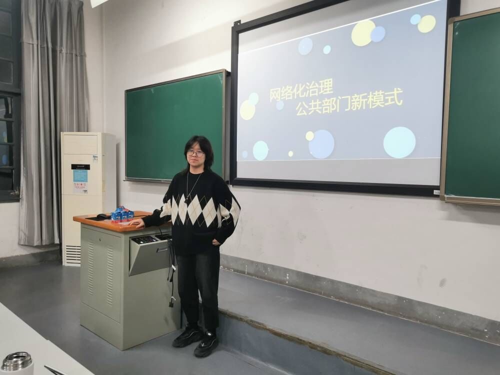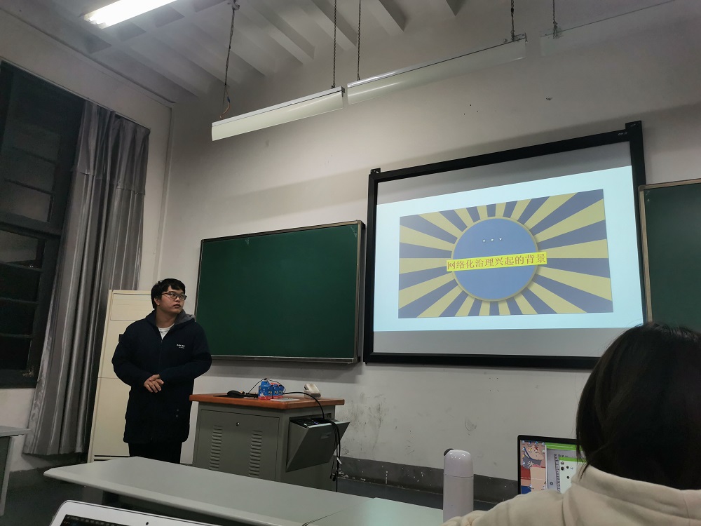 最后,由陈金灯同学向大家进行读书分享。他把重点放在了网络化治理的弊端上,详细为大家讲述了网络化治理可能会出现的三个弊端和风险,告诉大家新事物并非完美无瑕,也是有自身缺点的,需要辩证地去看待。