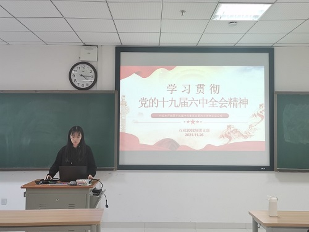 行政管理2002班召开组织生活会,共同学习中国共产党第十九届中央委员会第六次全体会议精神。本次会议由班长姚琪主持,行管2002班全体成员参加。
