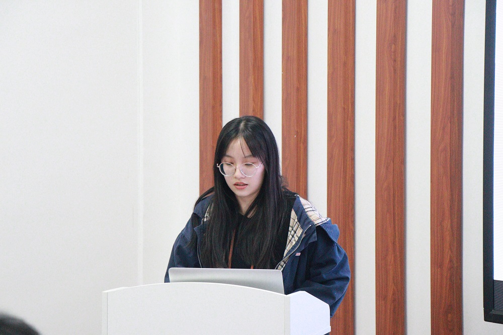 行管1901班鲁家琪同学进行优秀班集体答辩。他表示本班级在工作中认真学习党的政策方针,积极开展团日活动,确保同学们保持正确、坚定的思想政治方向。同时,班级同学积极参与学科竞赛,在许多大赛中积累经验,推动班级健康向上、积极发展。