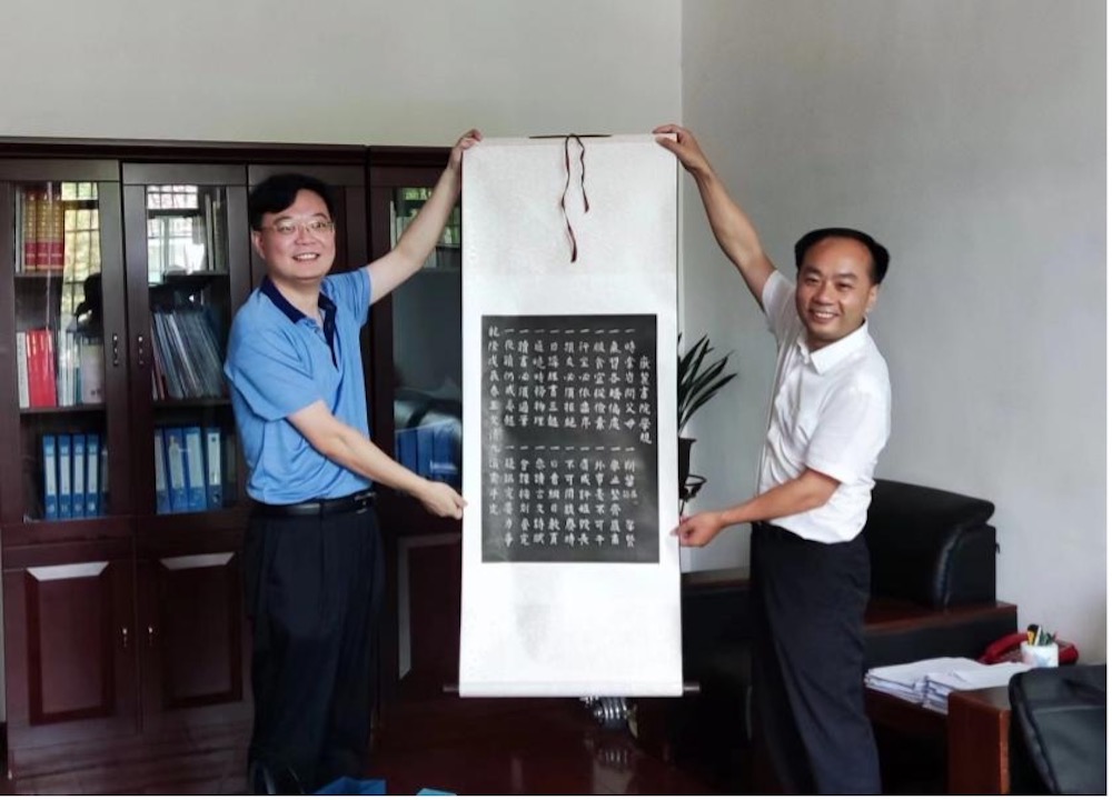 党委副书记杜倩博老师代表学院向沩山镇赠礼“千年学府”岳麓书院学规卷轴。随后,杜老师代表樱花漫画