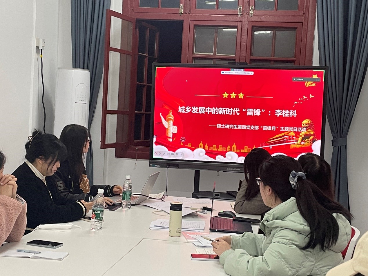 硕士研究生第四党支部在学院220室开展“雷锋月”主题党日活动,活动以“党员讲党课”的形式开展,由甘雨佳同志担任主讲人。