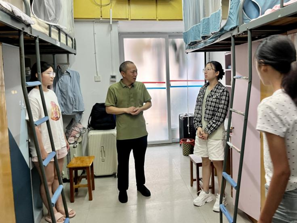 随后,杜老师前往新生宿舍进行走访。他仔细查看了寝室环境,特别叮嘱新生们要注意个人安全,遵守学校规章制度,共同维护良好的宿舍秩序。在交流过程中,杜老师还详细询问了新生们对即将到来的大学生活的期待与规划,并分享了自己的求学经历与人生感悟。