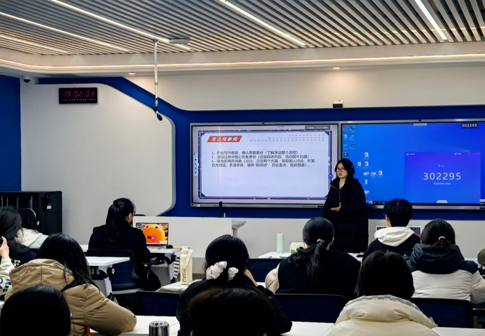 课程培训第二期——新闻稿撰写与照片拍摄、办公软件操作技巧于12月18日晚由团委宣传部、团委办公室在综合楼105组织开展。本次培训首先由团委宣传部陈俊超同学主讲,培训内容涵盖了新闻写作和活动拍摄两个方面。在新闻写作方面,陈俊超同学指出了新闻价值和客观性的重要性,并与营员们分享了如何从新闻的语言和结构两方面进行撰写与润色,提高新闻稿件的质量。在活动拍摄方面,则主要从拍摄时机、拍摄角度以及拍摄过程中的需要注意的事项进行讲解。分享最后,她与营员们进行交流互动,帮助营员们更好地理解和掌握宣传技巧和方法,为樱花漫画