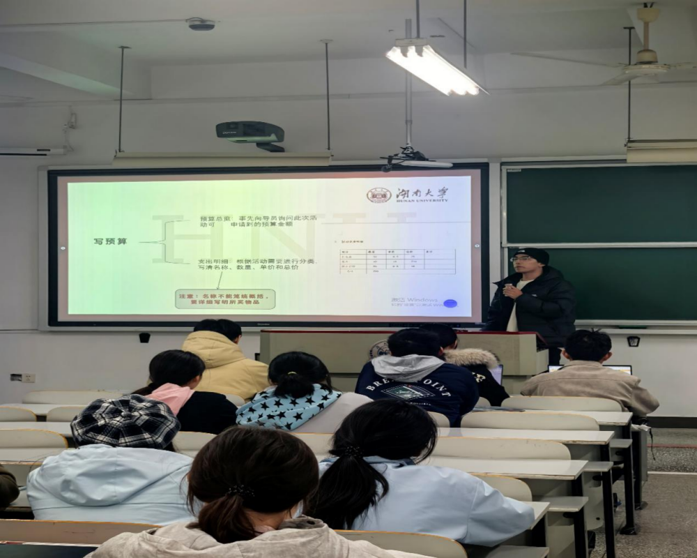 课程培训第一期——活动发票报销、活动策划案撰写,材料收集与文件撰写于12月17日晚由学生会活动部与团委办公室在综合楼213组织开展。会议正式开始后,首先由学生会活动部原永琪同学主讲,从策划案撰写、活动举办和报账流程三方面向同学们介绍如何办好一场活动。在策划案撰写方面,他通过冬至活动范例展示让同学们对活动策划产生初步了解,从策划案举办什么、举办内容、如何举办三个方面分别展开阐述每个阶段的注意事项,同时就 写预算、开发票、去报销三个步骤对如何顺利报账这一问题进行细致讲解。分享最后,他根据以往的工作经验向同学们提出不少工作注意事项,使营员们对今后的工作有了更深层次的认识。其次由团委办公室杨逢春同学讲解材料收集与文件撰写的相关内容,其中包含个人材料与集体材料的收集流程,文件格式与命名的注意事项。