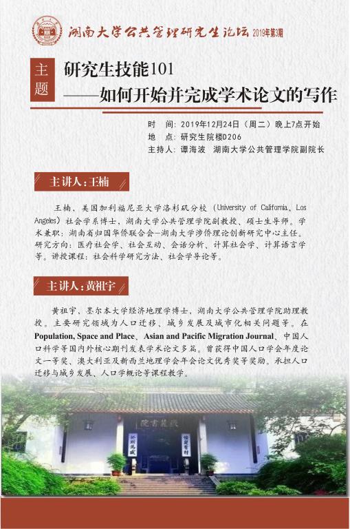 主题:研究生技能101——如何开始并完成学术论文的写作