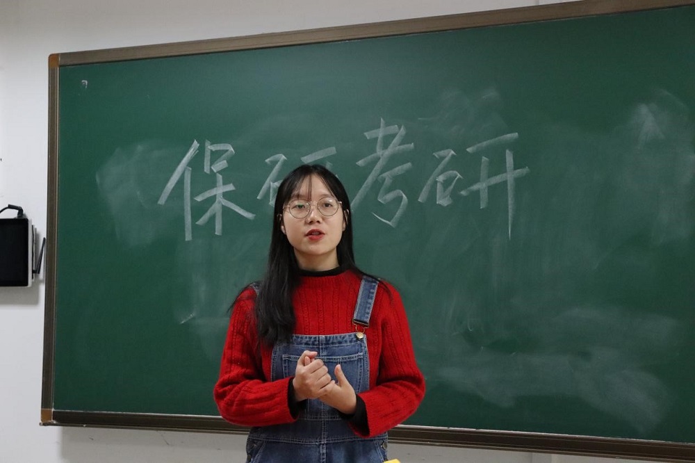 而后考研成功的陈雪莹同学针对同学们之前反映出的问题作出了解答,希望同学们明确自己的考研目标与方向,并多通过线下线上等方式渠道获取相关的信息资料。