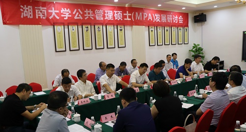梅苑国际学术中心召开。本次研讨会特邀湖南省人大常委会研究室、湖南省工业与信息厅、湖南省人力资源和社会保障厅、湖南省人民政府发展研究中心等20多位湖南省公共管理部门实践专家就公共管理硕士(MPA)学科发展及人才培养体系建设进行了深入研讨。研讨会由学院MPA教育中心执行主任颜克高教授主持。