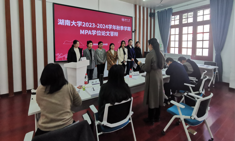 MPA教育中心对答辩工作进行全面部署、细致安排,按照研究方向、导师回避等原则分设十组进行,同时还特别邀请中南大学、湖南师范大学、湘潭大学、湖南农业大学的学科教授以及相关行政单位的在任领导作为校外评审专家出席。